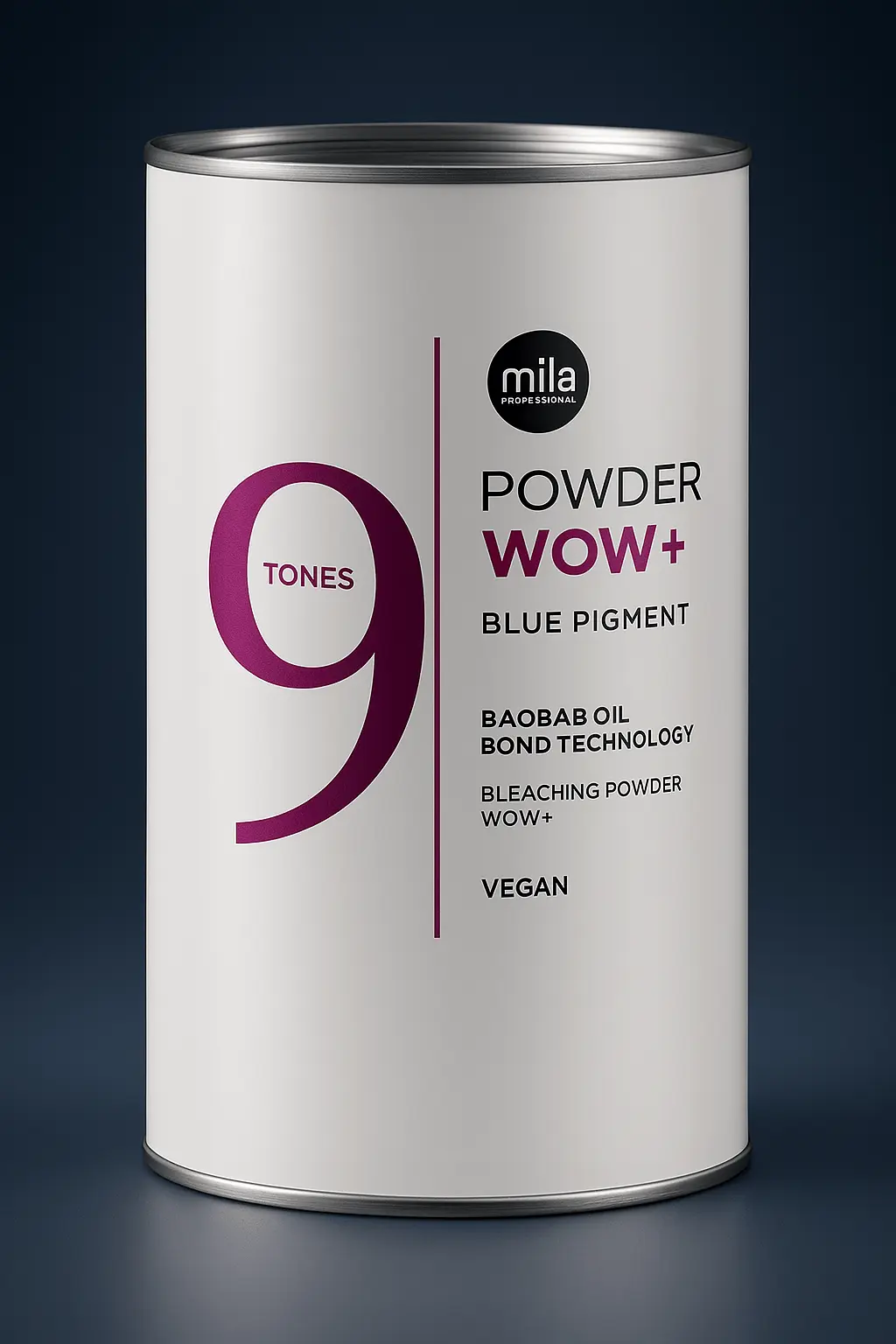 Mila Professional POWDER WOW+ lifts hair up to 9 levels with advanced bond-care. Infused with baobab oil and anti-yellow blue pigment, it protects, nourishes, and creates a clean, cool blonde finish.